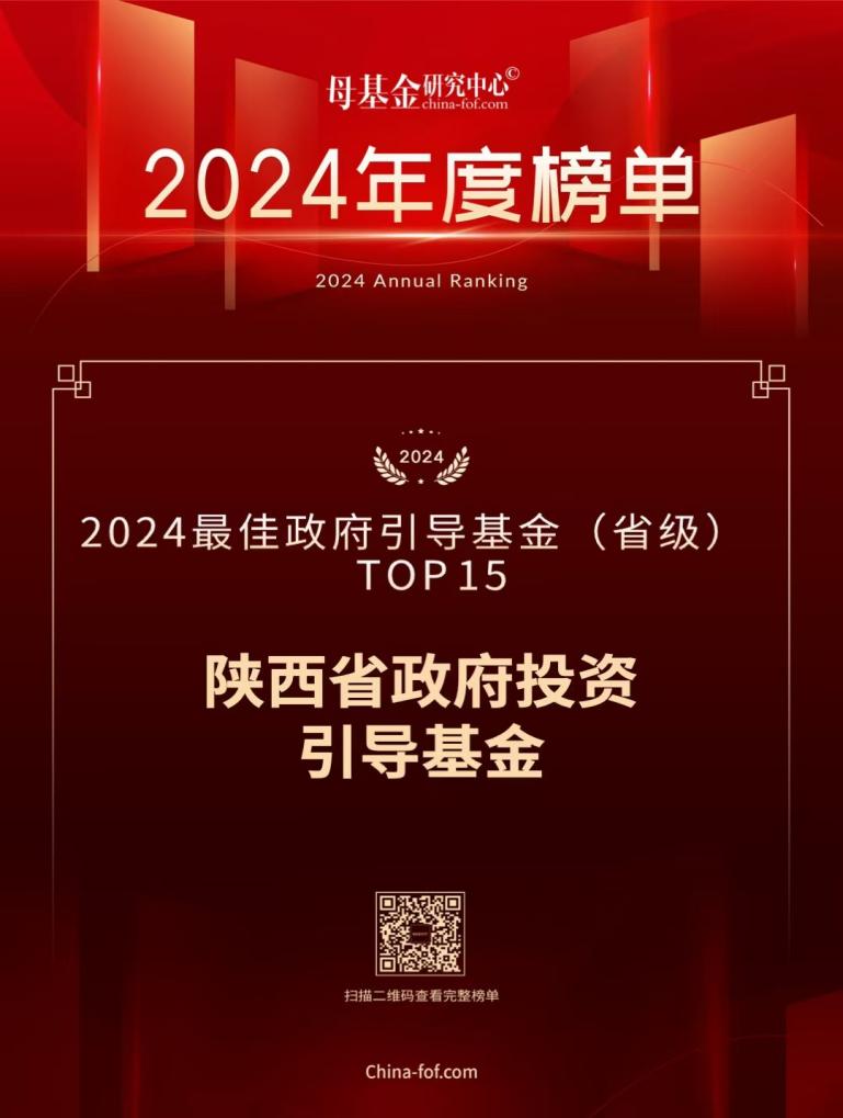 2024年12月9日,母基金研究中心正式發(fā)布了2024年度榜單,陜西省政府投資引導基金(以下簡(jiǎn)稱(chēng)“引導基金”)榮獲“2024最佳政府引導基金(省級)TOP30”獎項并位列第15名,這是引導基金第3次在該獎項上榜。