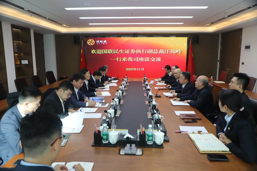 11月18日,國聯(lián)民生證券執行副總裁汪錦嶺一行來(lái)我司開(kāi)展座談,雙方圍繞金融服務(wù)實(shí)體經(jīng)濟發(fā)展、培育新質(zhì)生產(chǎn)力和深化業(yè)務(wù)合作進(jìn)行交流。公司總經(jīng)理李平產(chǎn)、副總經(jīng)理趙建房、副總經(jīng)理周飛以及相關(guān)部門(mén)、子公司人員參加會(huì )議。